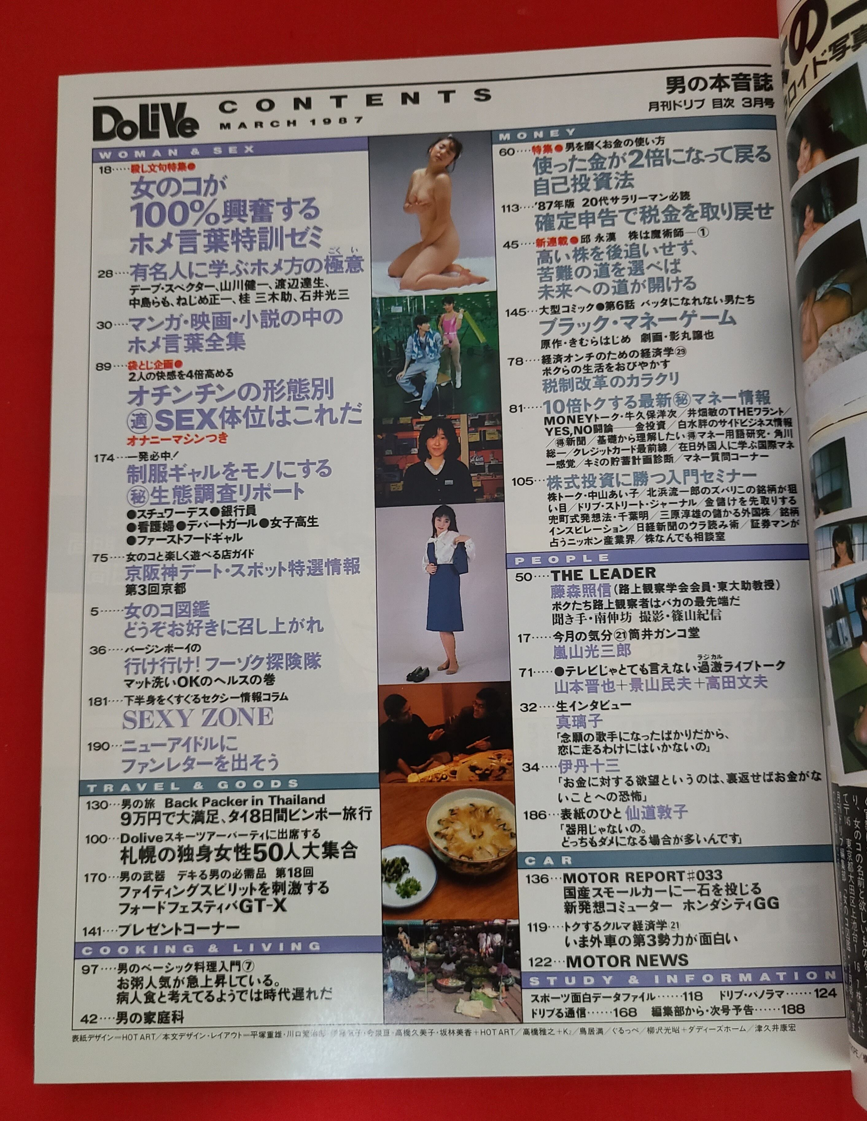 詳細:当時物 おすすめ男性情報誌 「月刊ドリブ 」 1987年 3月号 ※袋とじ開封済みです。